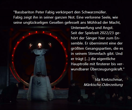 Der in Ilmenau geborene Bassbariton Peter Fabig ist aktuell festes Ensemblemitglied am Gerhart-Hauptmann-Theater Görlitz, wo er zuletzt u.a. Colline in Puccinis La Bohème und Daland in Wagners Der Fliegende Holländer sang. Aktuell steht er dort mit der Partie des Schwarzmüllers in der Uraufführung Krabat von Marius Felix Lange auf der Bühne.