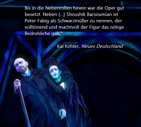 "... während aus dem Quintett der ebensfalls im Konsulat Hoffenden [...] der junge Peter Fabig mit weichem und geschmeidigem Bass und Johannes Pietzonka [...] hervorstechen."
